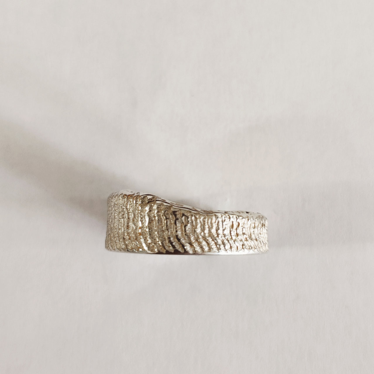 Anneau irrégulier et fin pour homme en argent 925, texturé et poli.